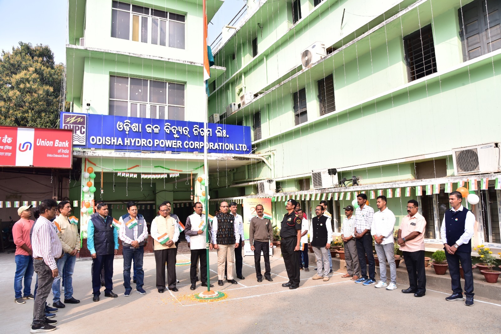 Odisha Hydro Power Corporation Ltd. (OHPC), a Gold rated state PSU celebrated the 77th Republic Day on 26th January 2026 at Corporate Office, Training Centre, and its Units with due solemnity and patriotic spirit. At the Corporate Office, the National Flag was unfurled by Sri Pranab Kumar Mohanty, Director (Finance), in the august presence of Sri Amiya Kumar Mohanty, Director (Operation), along with senior officers and staff. The National Flag was unfurled by Sri Amiya Kumar Mohanty, Director (Operation) at the OHPC Training Centre, Chandaka. To commemorate the historic occasion, hand flags and tricolour badges were distributed among employees, fostering a spirit of unity, pride, and devotion to the nation.