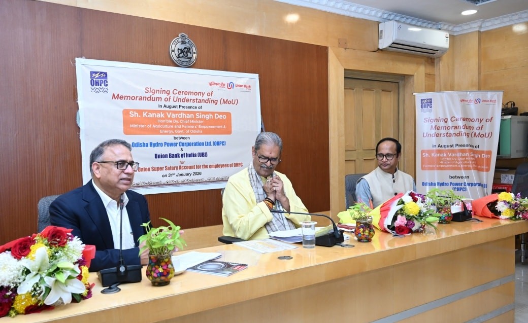 A Memorandum of Understanding (MoU) was signed between Odisha Hydro Power Corporation Ltd. (OHPC) and Union Bank of India (UBI) on 31.01.2026 for Customised Union Super Salary Account for the employees of OHPC. The Memorandum of Understanding (MoU) was signed in the Conference Hall of GA Department, Govt. of Odisha in the august presence of Sj. Kanak Vardhan Singh Deo, Hon’ble Deputy Chief Minister, Agriculture and farmer’s empowerment and Energy, Odisha, Sh. Vishal Kumar Dev, IAS, Principal Secretary to Govt. Energy Department, Govt. of Odisha & CMD, OHPC, Shri Saidutta Biplab Keshari Pradhan, OAS(SAG), Sh. P. K. Mohanty, Director (Fin.), OHPC, Sh. S. Patnaik, Director (HR), OHPC and Sh. A. K. Mohanty, Director (Operation), OHPC, Sri Gagan Bihari Maharana, Sr. General Manager (Fin.), OHPC, Sh. Harekrushna Das, General Manager & Zonal Head, Sh. N. Barik, DGM and senior members of OHPC & UBI. On this momentous occasion Sj. Kanak Vardhan Singh Deo, Hon’ble Deputy Chief Minister and Sh. Vishal Kumar Dev, IAS, Principal Secretary to Govt. Energy Department, Govt. of Odisha appreciated the steps taken by OHPC in association with the bank for the welfare of employees of OHPC.
